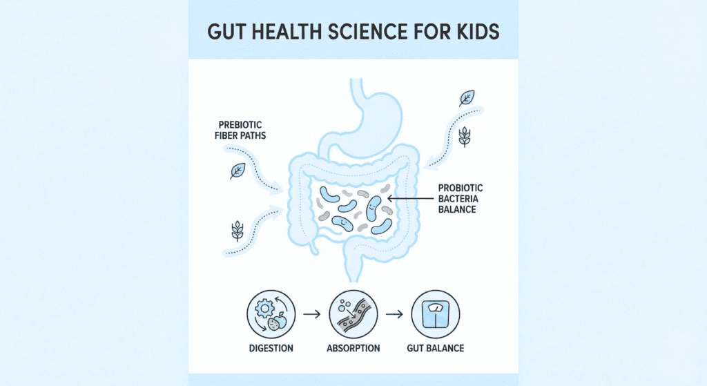 A healthy gut improves digestion and nutrient absorption. Prebiotics nourish beneficial gut bacteria, while probiotics help maintain microbial balance. Good protein digestibility ensures nutrients are efficiently absorbed to support growth and immunity.